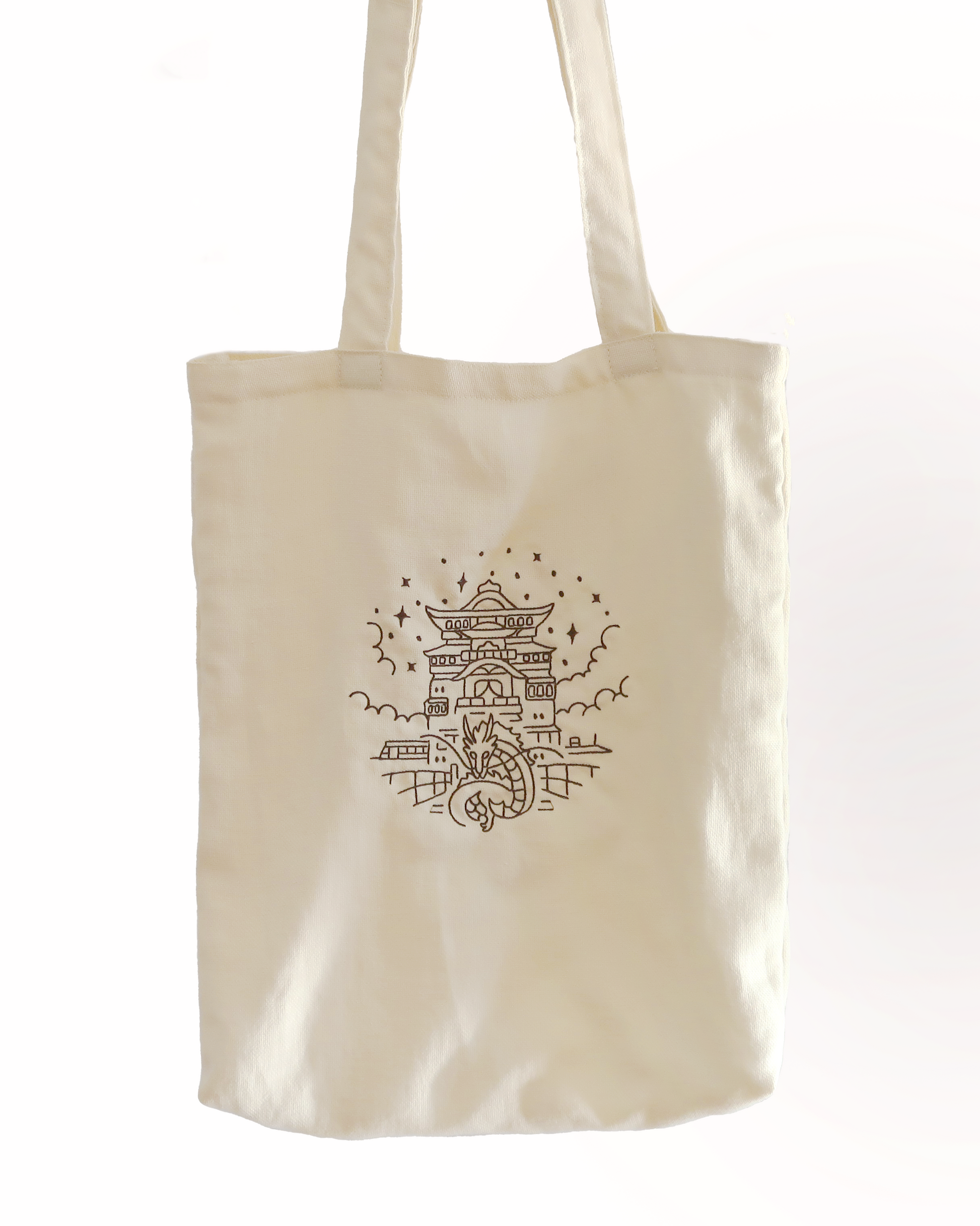 - Tote bag with an embroidery inspired by the movie "Spirited away".